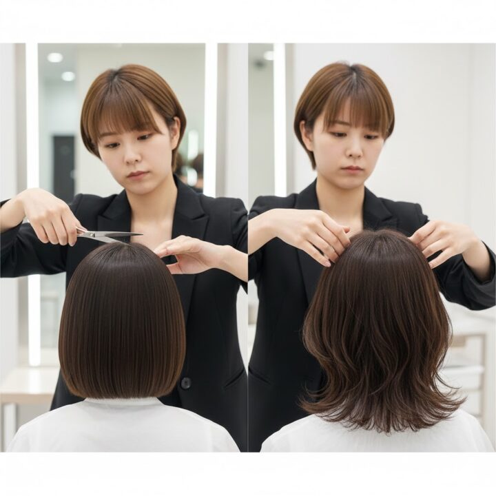 縮毛矯正で叶える、ノーストレス切りっぱなしボブのオーダー術と、髪質別・毛量別の楽しみ方、自宅でできる髪質改善とヘアケア方法までを徹底解説します。