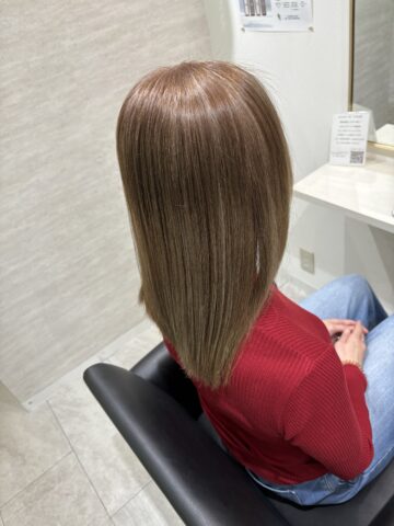 ハイトーンカラーをされていますが、ブリーチを使用されていないため、髪に十分な体力が残っています。これにより、今後も美髪を長く持続していくことが可能です。