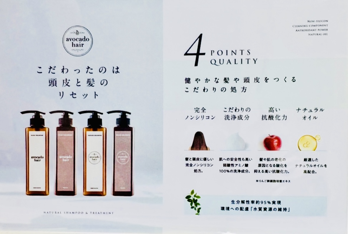 本町avocado hairのオリジナルシャンプー、トリートメントの特徴と成分内容