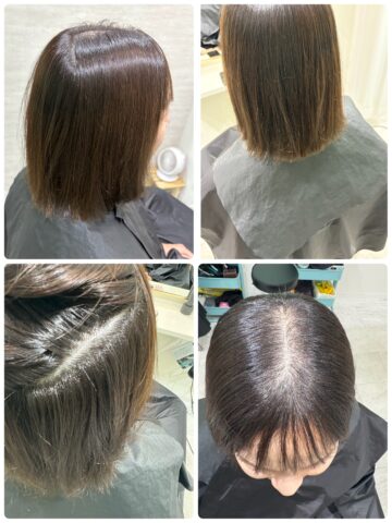 前髪のぱっくり割れがシャンプー後特になくなり、ペタンコ具合もオペ前とくらべ良くなりました!!