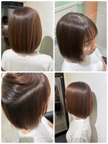 髪の体力に合わせた優しい薬剤で、毛髪強度を高めながら、縮毛矯正しなおしました。